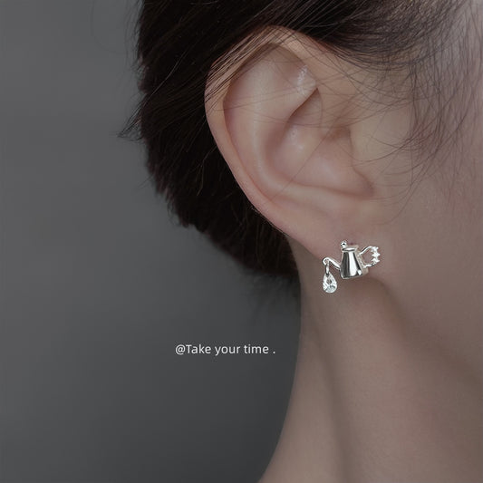 C廠【6736】個性ins設計師款925銀針水壺造型水滴耳飾趣味小眾新款耳環女 25.09-2