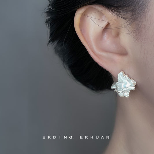 C廠【6832】不規則異形霧面氣質時尚高級感銀針幾何液態耳飾新款銀針耳環 25.09-4