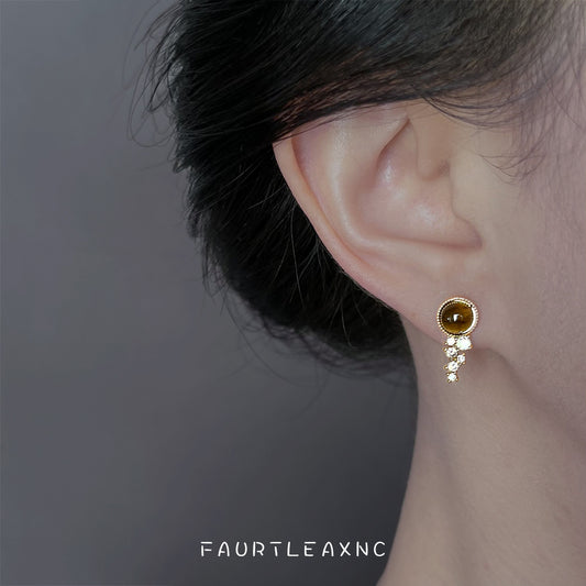 C廠【6808】原創星河天然石虎眼石微鑲鋯石925銀針鍍14K時尚簡約小巧耳環耳飾 25.09-3