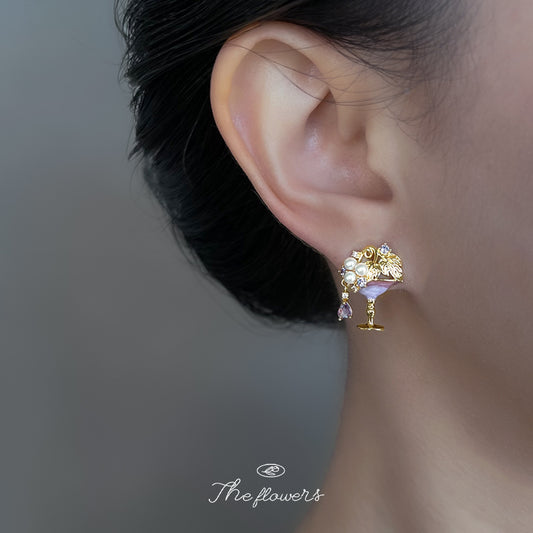 C廠【6831】原創設計師款微鑲鋯石925銀針紅酒杯時尚高級感清新甜美耳飾 耳環 25.09-4