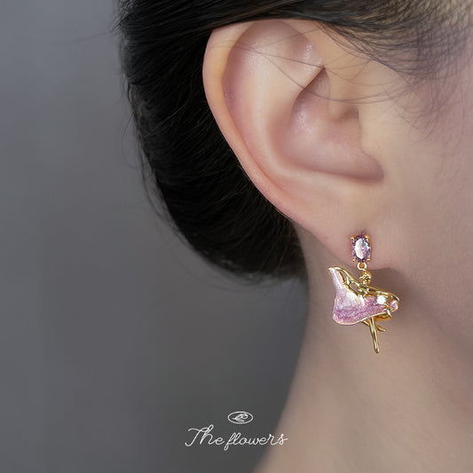 C廠【6830】原創清新甜美925銀針鑲嵌鋯石琺瑯彩繪漸變色芭蕾舞女孩耳飾 耳環 25.09-4