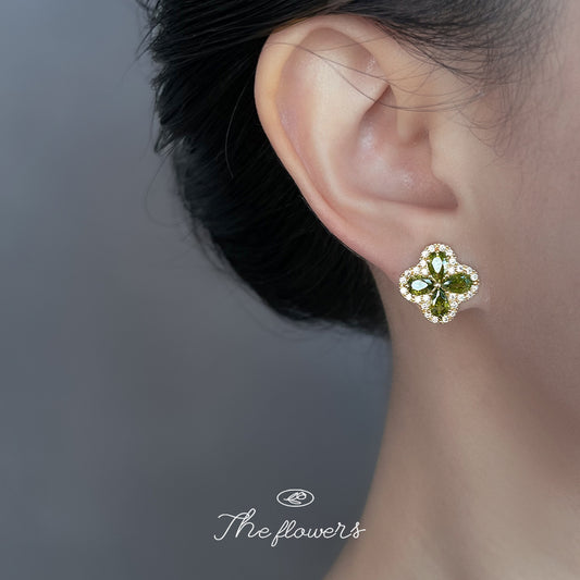 C廠【6829】高級感微鑲鋯石橄欖綠925銀針時尚通勤日常新款百搭耳飾耳環 25.10-1
