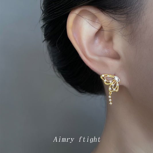 C廠【6834】原創設計微鑲鋯石925銀針鍍14K蝴蝶耳環時尚高級感通勤新款耳環女 25.09-4