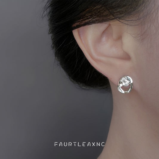 C廠【6807】個性甜酷冷淡風幾何不規則鑲嵌鋯石耳環女925銀針ins通勤耳飾 25.09-3