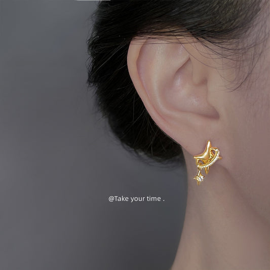 C廠【6801】芒星原創設計鑲鋯石925銀針鍍14K時尚個性簡約通勤高級感耳飾耳環 25.09-3
