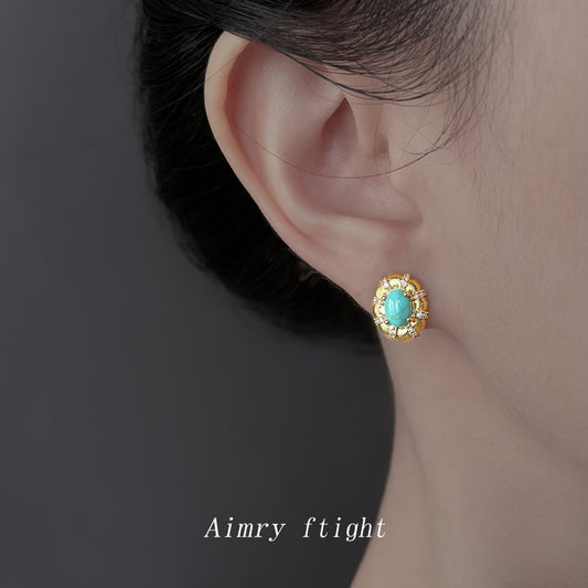 C廠【6880】文藝復古高級感橢圓鵝蛋合成鬆石新款微鑲鋯石耳環 925銀針耳飾女 25.10-1
