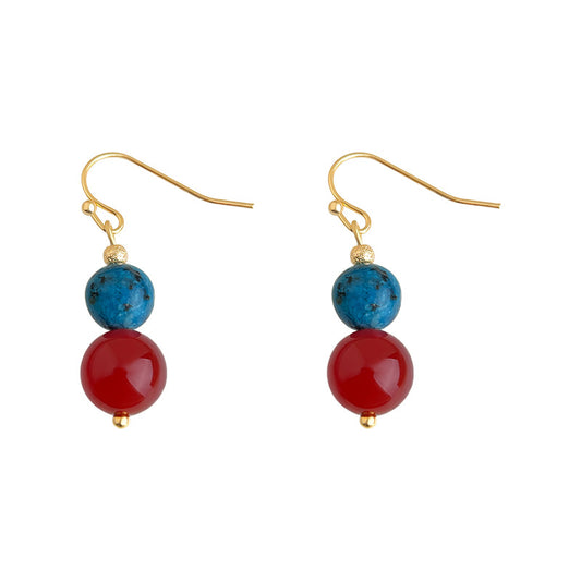 C廠【6888】天然石紅瑪瑙手工藝設計感國潮民族風文藝復古新款水滴耳環耳環 25.10-2