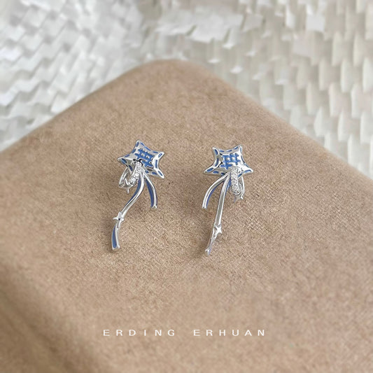 C廠【6868】原創個性許願星甜酷風新款925銀針微鑲鋯石彩繪藍色耳環 25.10-1