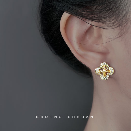 C廠【6879】時尚高級感微鑲鋯石925銀針幾何輕奢風老錢新款耳環耳環 飾品 25.10-1