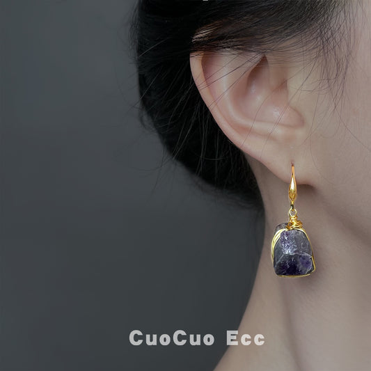 C廠【6892】紫晶石天然石碎石清冷感時尚高級感新款國潮新中式手工耳環女耳環 25.10-2