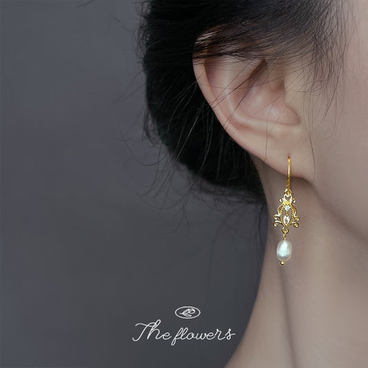 C廠【6893】淡水珍珠微鑲鋯石文藝復古宮廷風新款鏤空法式耳環新款耳環女 25.10-2