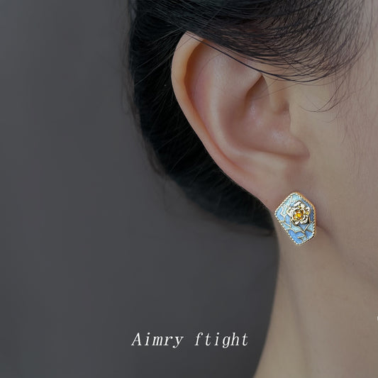 C廠【6870】原創茶花設計師款霧霾藍色秋冬熱賣新款小眾個性耳環耳環飾品 25.10-1