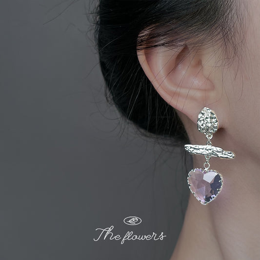 C廠【6891】實物很美~清透高級感玻璃愛心水晶淡紫色氣質新款耳環耳環女 25.10-2