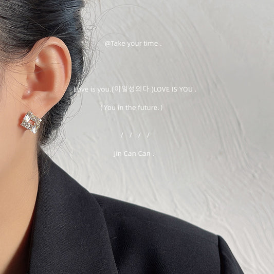 C廠【89】微鑲鋯石輕奢高級感方形鏤空通勤耳環法式簡約大氣幾何小巧耳飾女 24.03-3