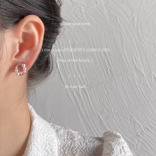 C廠【756】法式高級感人魚姬色珍珠氣質耳圈通勤百搭小眾設計感赫本風耳飾女 24.01-3