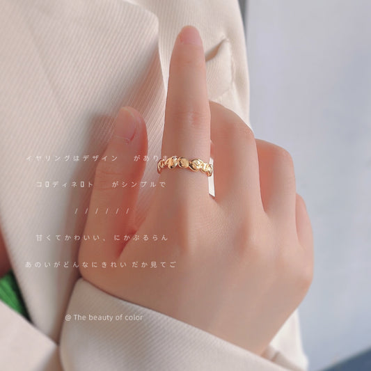 C廠【918】法式高級感~微鑲鋯石鍍14K均碼戒指 ins簡約滴油愛心食指戒 尾戒 25.06-4