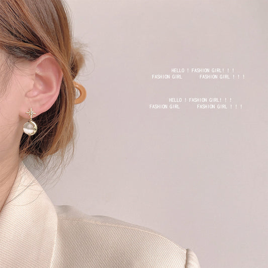 C廠【800】法式溫柔玻璃貓眼石氣質高級感耳環通勤百搭優雅芒星設計感耳飾女 24.06-2