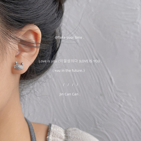 C廠【878】微鑲鋯石可愛小螃蟹耳環可愛通勤百搭玫瑰金溫柔甜美小巧氣質耳飾 24.08-1