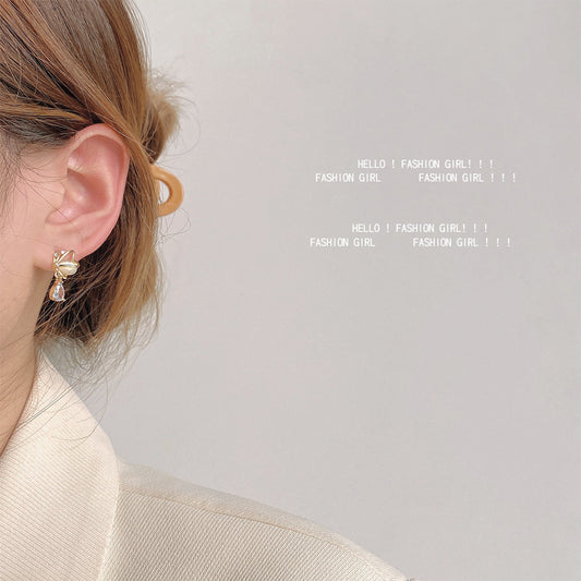 C廠【7045】淡水珍珠微鑲鋯石清新甜美小香風新款耳環飾品水滴耳環女 25.11-1