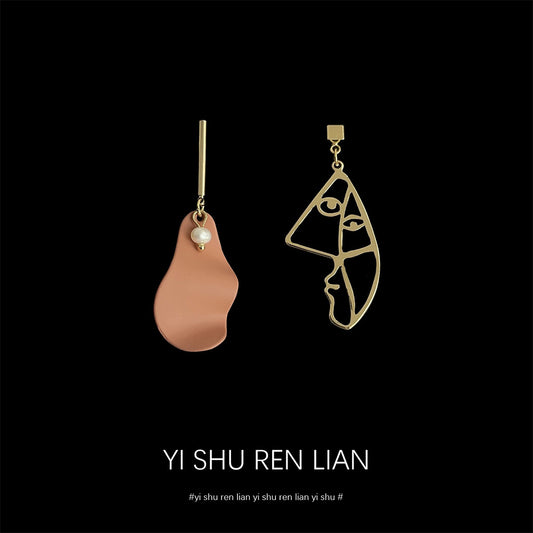 C廠【872】小眾設計感藝術人臉長款高級感不規則鏤空法式復古耳環鍍14K耳環 24.03-2