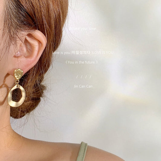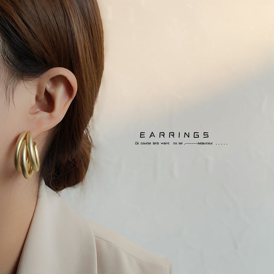 C廠【A748】中古風霧面啞金C形線條高級感耳環歐美大氣百搭港風復古氣質耳飾 24.06-4
