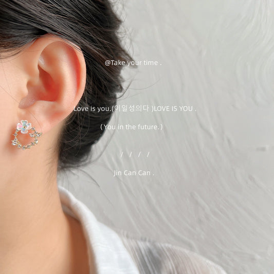 C廠【A155】微鑲鋯石甜美清新花環通勤小耳環設計感小花大氣高級感氣質耳飾品 24.10-4