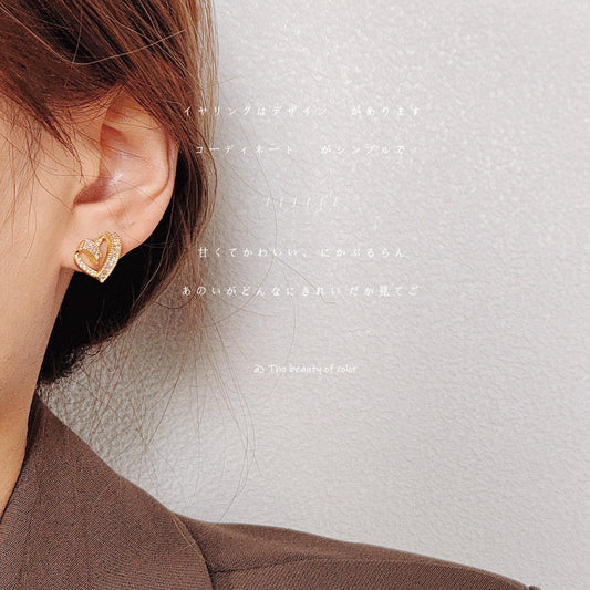 C廠【A47】微鑲鋯石愛心迷你耳環通勤百搭高級感簡約心型休閒風氣質小巧耳飾 24.12-1