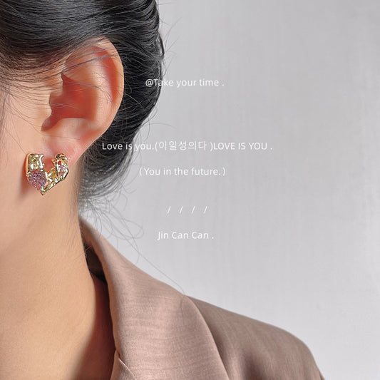 C廠【A60】設計感液態微鑲鋯石愛心耳環女小眾創意時髦心型高級感耳飾鍍14K 24.06-2