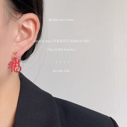 C廠【A472】福兔~925銀針不對稱設計烤漆紅色兔年耳環耳飾 24.01-1