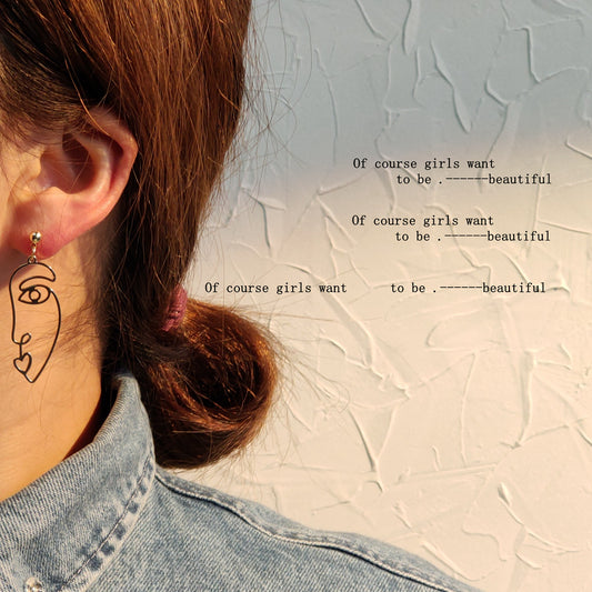 C廠【A692】法式復古高級感霧面金屬不對稱人頭像小眾設計感百搭氣質耳飾 24.03-2