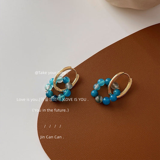 C廠【A351】原創設計手工天然石瑪瑙串珠手工耳環簡約百搭圓形幾何新中式耳飾 24.02-4