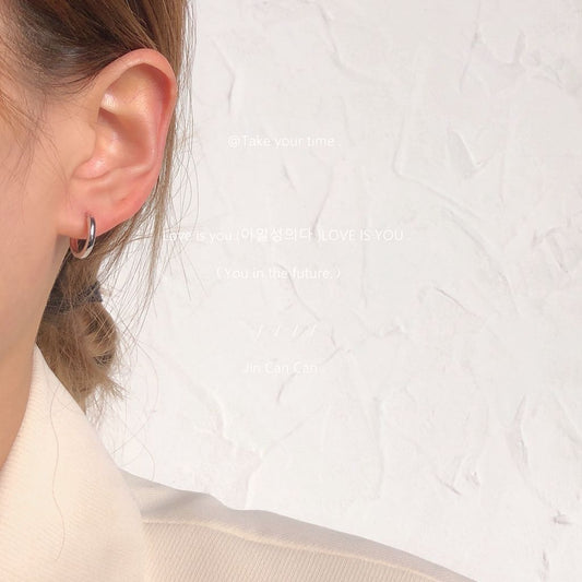 C廠【B262】通勤百搭極簡素圈細耳扣冷淡風高級感銀色簡約光面金屬感氣質耳飾 24.06-3