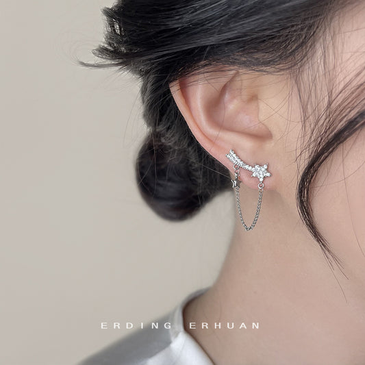 C廠【B412】甜酷風微鑲鋯石星星鏈條時尚耳環925銀針小眾設計感百搭日韓耳飾 24.05-5