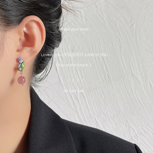 C廠【B235】琺瑯滴釉漸層花朵森系耳環法式浪漫鬱金香草莓晶手工藝高級感耳飾女 24.07-3