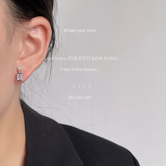 C廠【B579】香水瓶優雅珍珠迷你耳環法式簡約設計感微鑲鋯石幾何高級感耳飾品 25.01-2