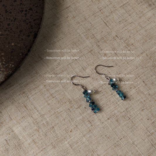 C廠【B863】手工設計感玻璃水晶串珠耳環通勤百搭時尚冷淡風高級感珍珠耳飾女 24.06-3