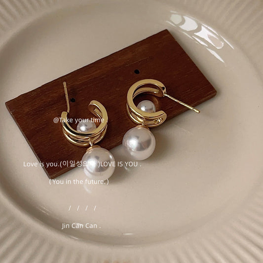 C廠【B527】一款兩戴法式復古高級感輕奢珍珠耳環通勤百搭C型金屬感氣質耳飾 24.09-1