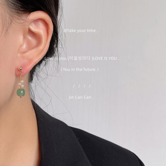C廠【B622】新中式手工藝綠玉珍珠耳環設計感輕奢清新串珠溫婉氣質高級感耳飾女 24.08-1