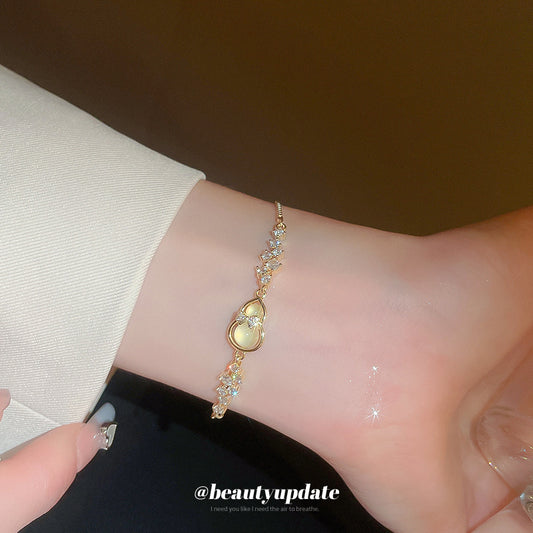 A廠【HB3026】貓眼石鋯石花朵波浪拼接手鍊冷淡風鏈精緻時尚手環氣質高級感手飾 24.08-3
