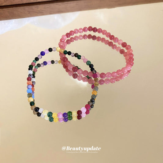 A廠【HB2705】彩色天然石草莓晶串珠手鍊韓系少女心百搭手串小清新高級感手飾女 24.07-1