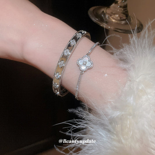 A廠【HB2979】潮流設計感滿鑽貝母花朵手鍊跨境輕奢時尚手環精緻潮流高級感手飾 24.09-1