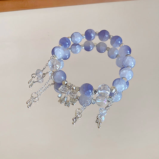 A廠【HB2919】新中式蝴蝶結愛心吊墜手鍊中國風漸變冰裂琉璃手串甜美清新手飾女 24.07-3