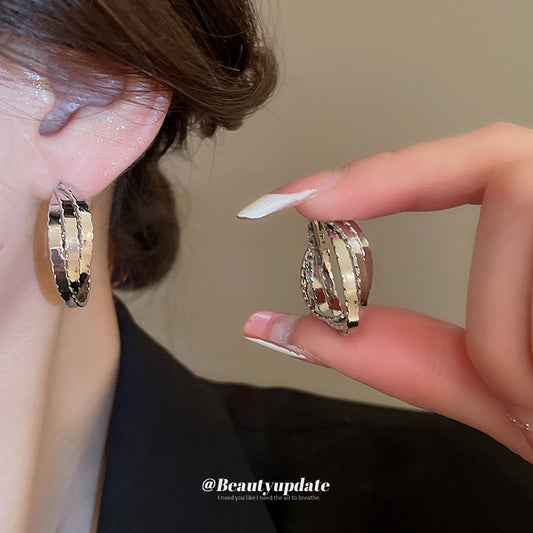 A廠【HE23061】925銀針跨國波浪多層環形耳圈輕奢小眾高級感耳環個性金屬冷淡風耳環24.10-3