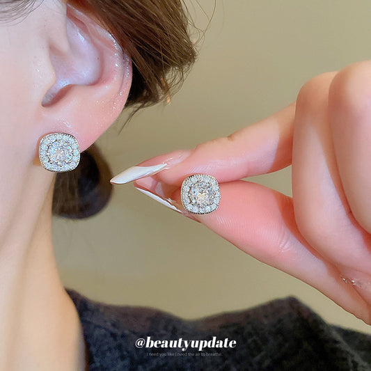 A廠【HE23158】925銀針超閃方形鑲鑽鏤空耳環女簡約耳環時尚氣質耳環小眾輕奢高級感 24.10-4
