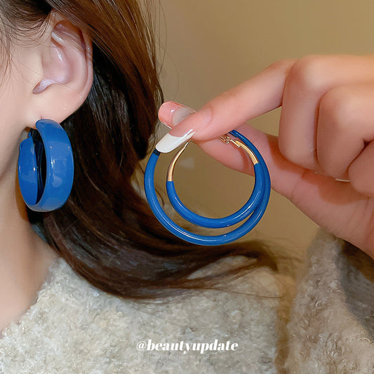 A廠【HE23189】925銀針克萊因藍簡約圓形耳圈女復古氣質耳環時尚個性耳環輕奢高級感 24.11-1