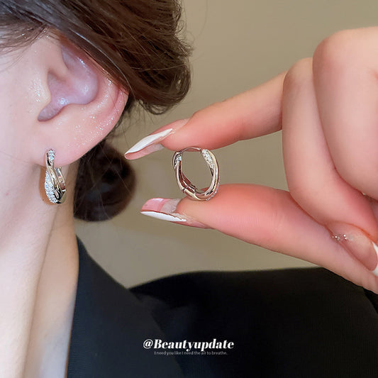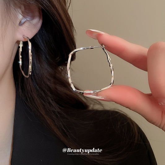 A廠【HE23066】跨境925銀針扭曲菱形素圈耳圈誇張個性冷淡風耳環時尚氣質簡約耳環女 24.10-4