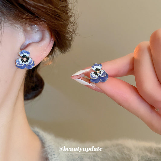 A廠【HE23187】925銀針滴油拼色鑲鑽花朵耳環女法式優雅時尚氣質耳環耳環輕奢高級感 24.10-4