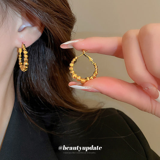 A廠【HE23160】真金電鍍925銀針不規則圓形金屬耳圈小眾耳環時尚百搭耳飾輕奢高級感 24.10-4