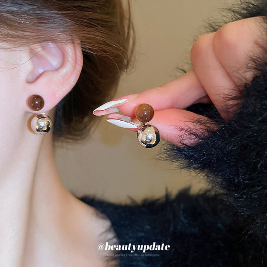 A廠【HE23098】925銀針美拉德風圓形虎眼石款耳環一款兩戴式耳環耳飾輕奢高級感秋冬 24.10-4