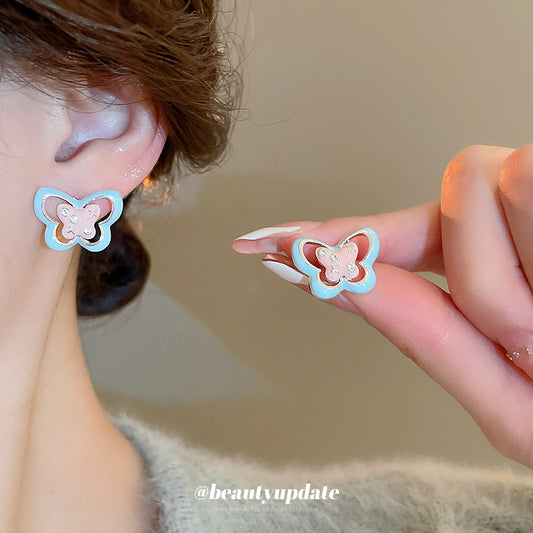 A廠【HE23188】925銀針滴油蝴蝶圓形鏤空耳環甜美少女心耳環可愛設計感簡約耳環 24.10-4